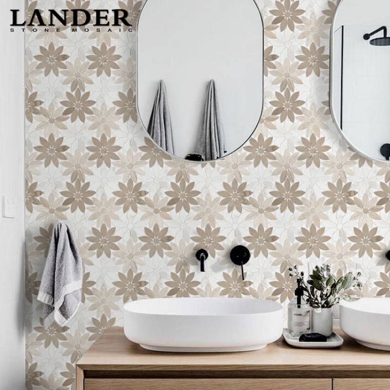 Mosaic đá cẩm thạch hình hoa phong cách mới 265*290mm màu hỗn hợp độc đáo LAY173