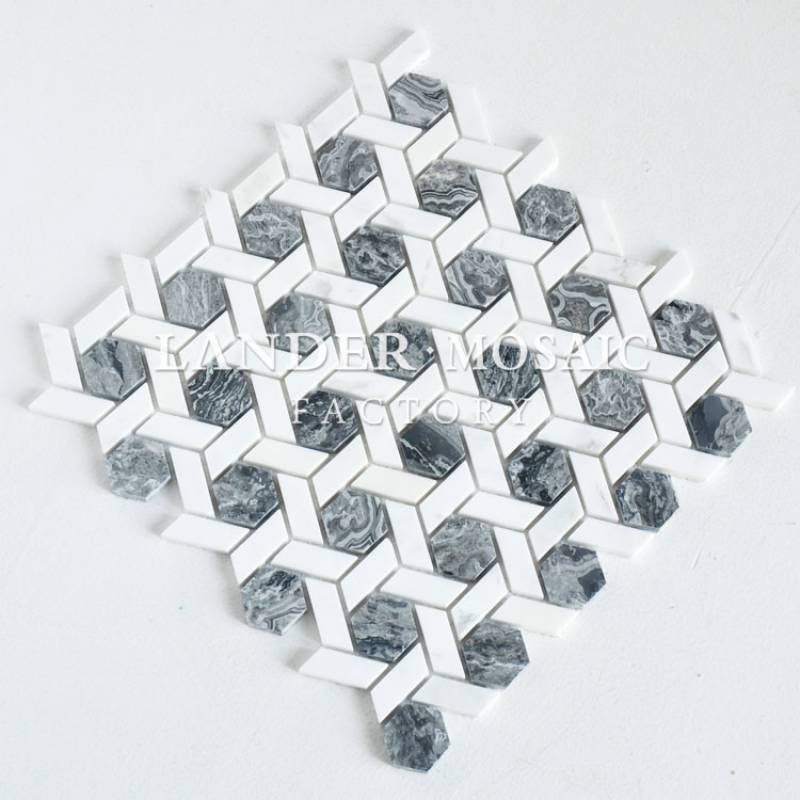 Mosaic đá cẩm thạch lục giác 282x292mm ba màu độc đáo LAY719