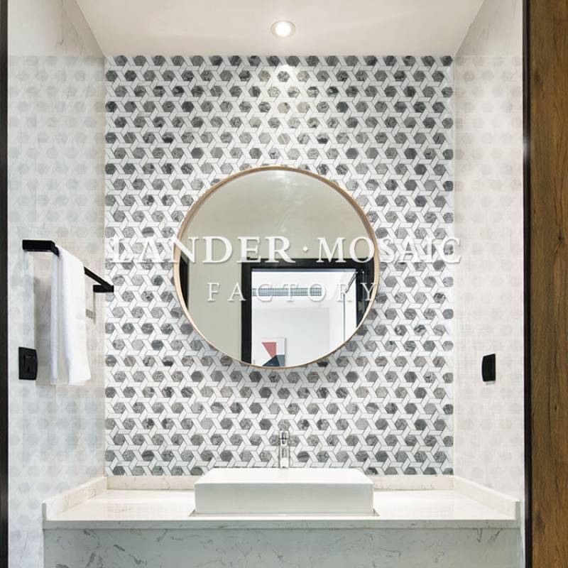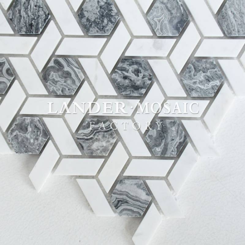 Mosaic đá cẩm thạch lục giác 282x292mm ba màu độc đáo LAY719 được yêu thích sử dụng trong trang trí nhà ở, phòng bếp, nhà tắm, không gian khách sạn, nhà hàng, ..........đem đến không gian vô cùng sang trọng và độc đáo.