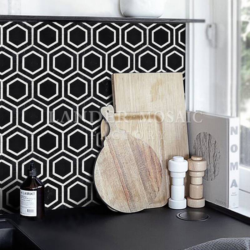 Mosaic đá cẩm thạch lục giác 285x315mm màu đen LAY665-D được yêu thích sử dụng trong trang trí nhà ở, phòng bếp, nhà tắm, không gian khách sạn, nhà hàng, ..........đem đến không gian vô cùng sang trọng và độc đáo.
