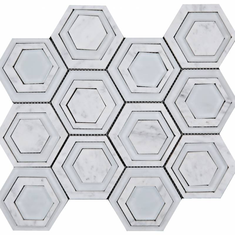 Mosaic đá trang trí màu trắng hình lục giác WJ018A-P