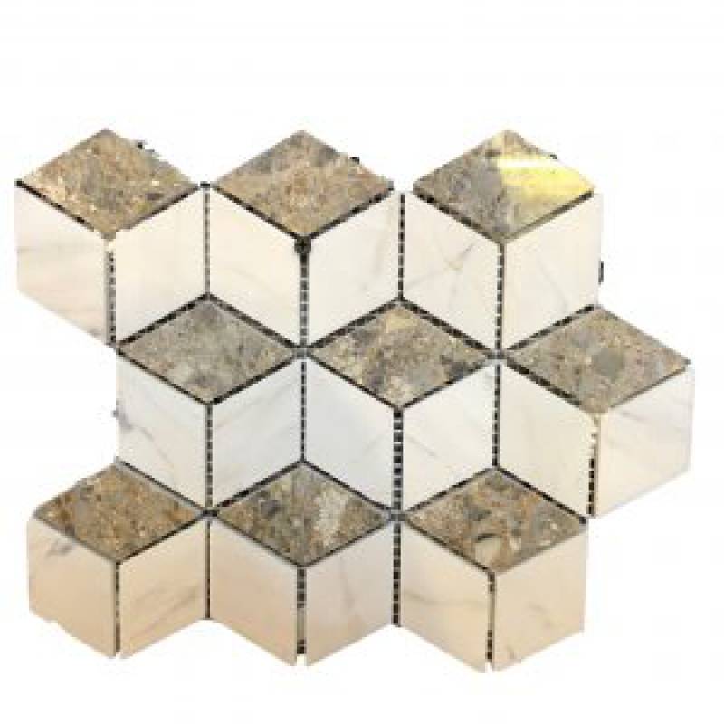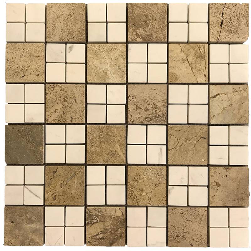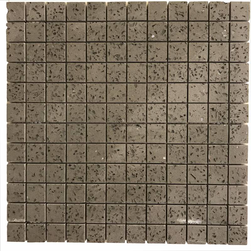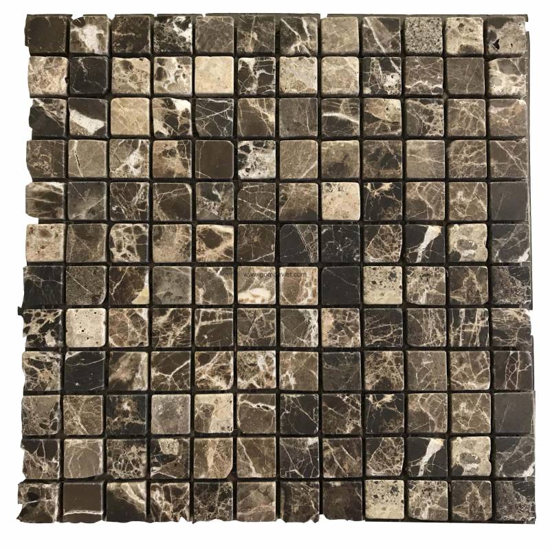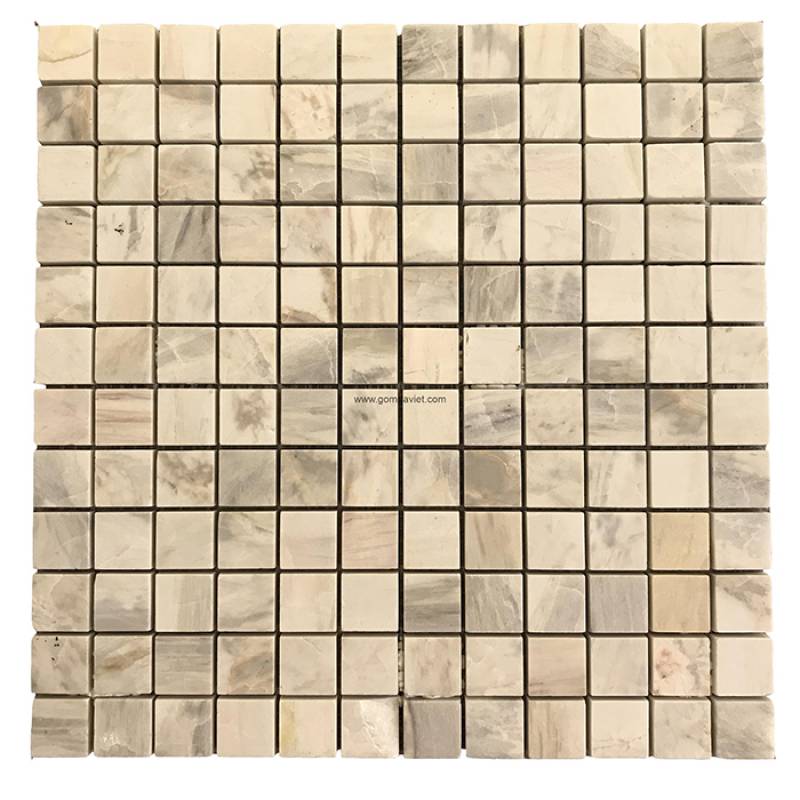 Mosaic đá tự nhiên 23x23x9mm màu da ghi đậm vân đá - 23