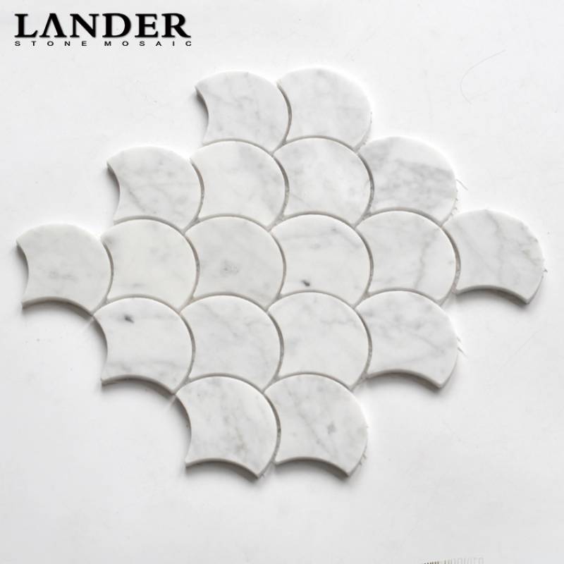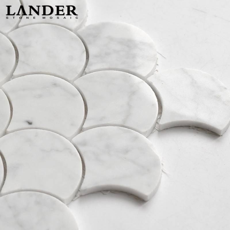 Mosaic đá tự nhiên trang trí hình vảy cá màu trắng LAY889 Carrara