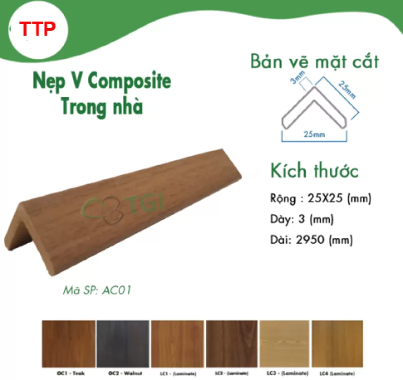 Nẹp gỗ nhựa chữ V 2.5cm AC01