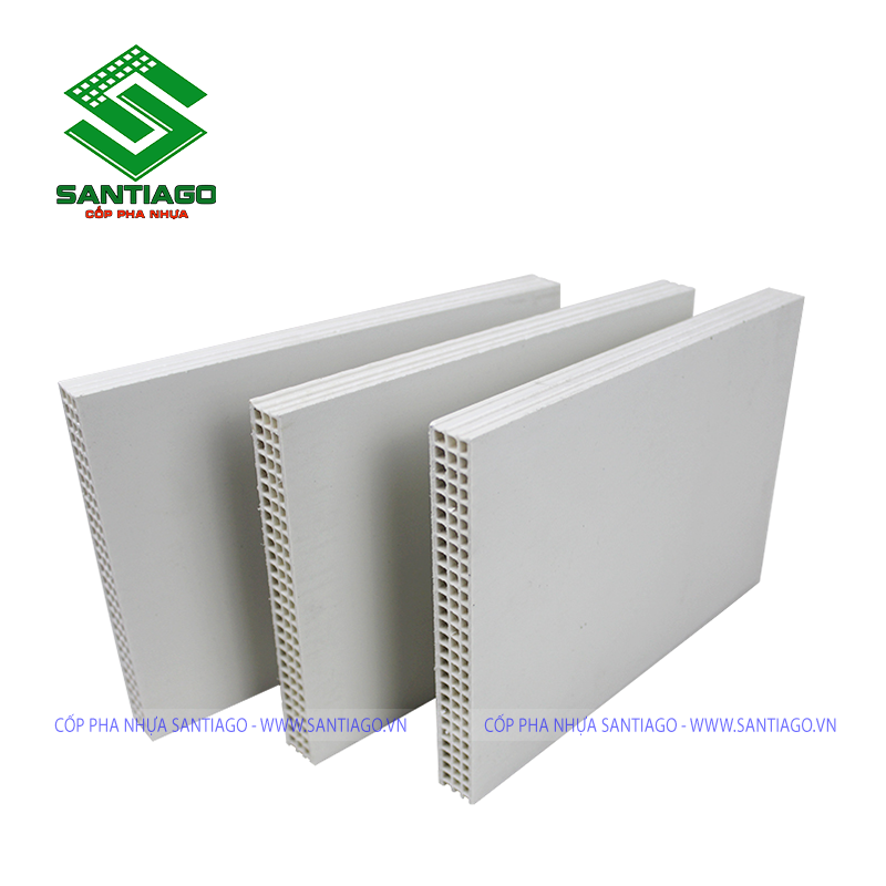 Cốp pha nhựa Santiago có cấu tạo đặc rỗng được sản xuất từ nhựa tổng hợp cao cấp và các phụ gia, được chọn lọc nguyên liệu rất nghiêm ngặt nên những tấm cốp pha nhựa có thể chịu được lực va đập, chịu lực cực kỳ tốt khi thi công tại công trình.