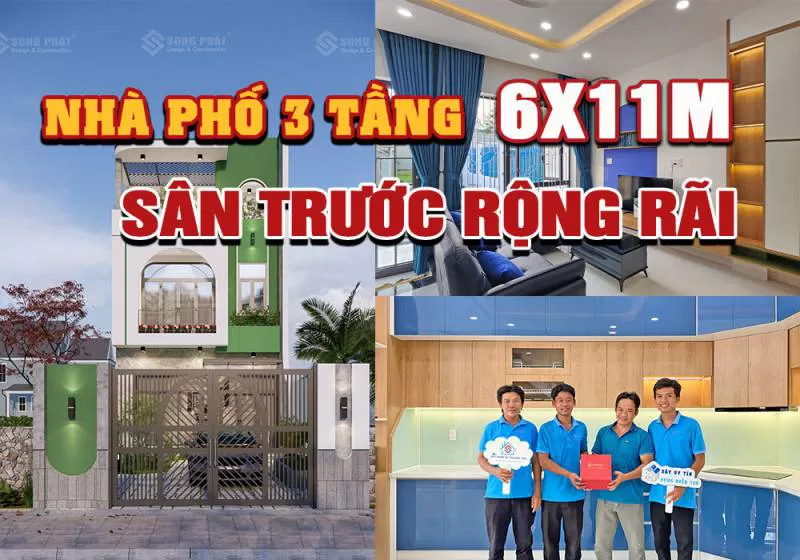 Nhà phố 3 tầng 6x11m có sân trước rộng rãi tại Bình Dương - Xây Dựng Song Phát