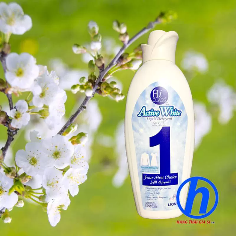 Nước giặt đồ trắng Hiclass white, chuyên cho đồ trắng siêu sạch mà không bị hư đồ, được chuộng nhất Thái Lan và các nước Tây Á và Trung Đông.
