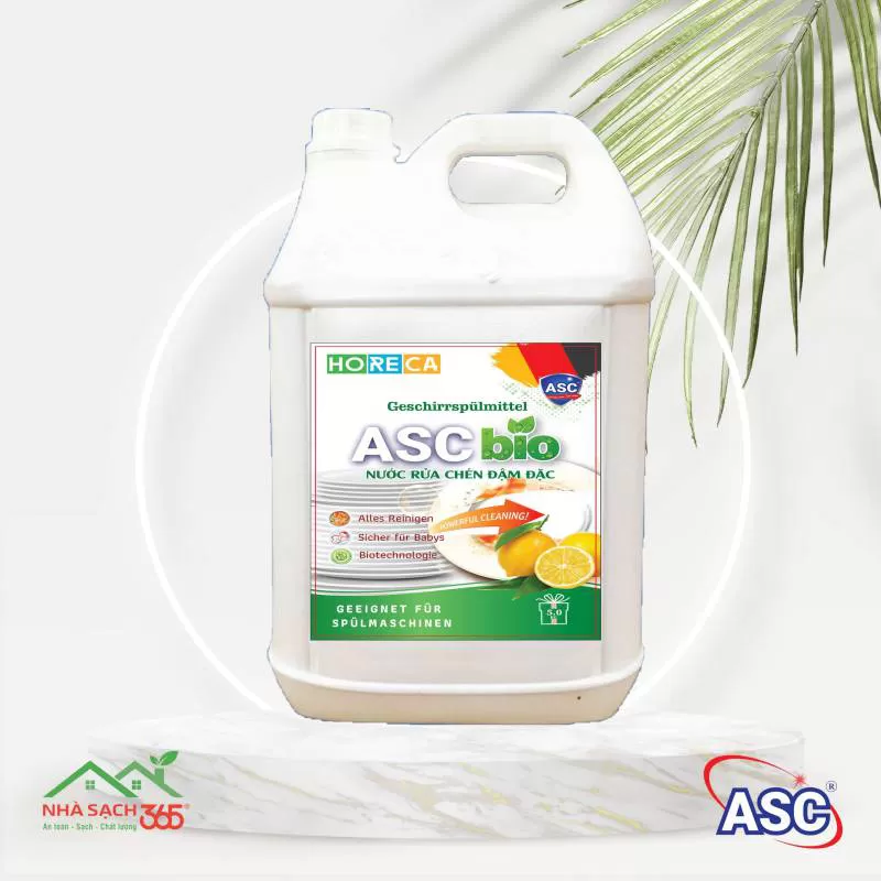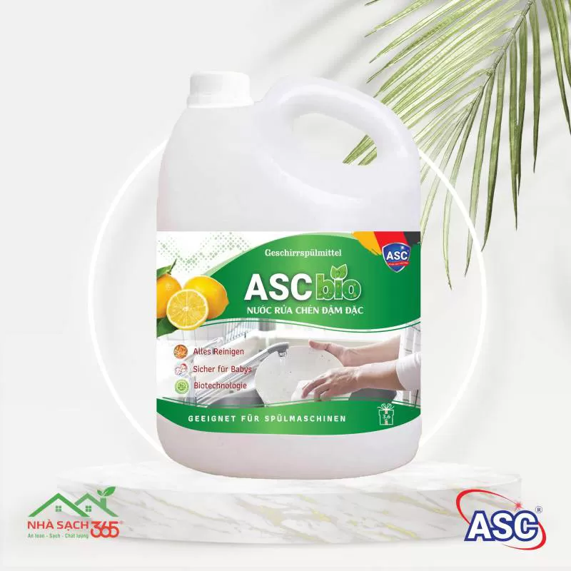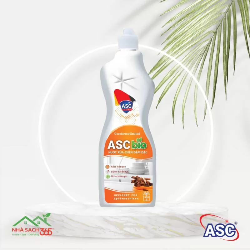 Nước rửa chén đậm đặc ASC hương gừng Sản phẩm áp dụng công nghệ sinh học tiên tiến của Cộng Hoà Liên Bang Đức với nguồn nguyên liệu được chiết xuất từ thực vật
