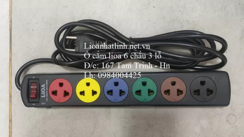 Ổ cắm điện lioa 6 lỗ 3 chấu mầu đen Model: 6SND3.2.10 thế hệ mới giá rẻ, ổ cắm điện lioa 6 chấu dây 3m, dòng max 10a - 2200w, bền và đẹp bảo hành lên đến 10 năm, giao hàng miễn phí trên toàn quốc