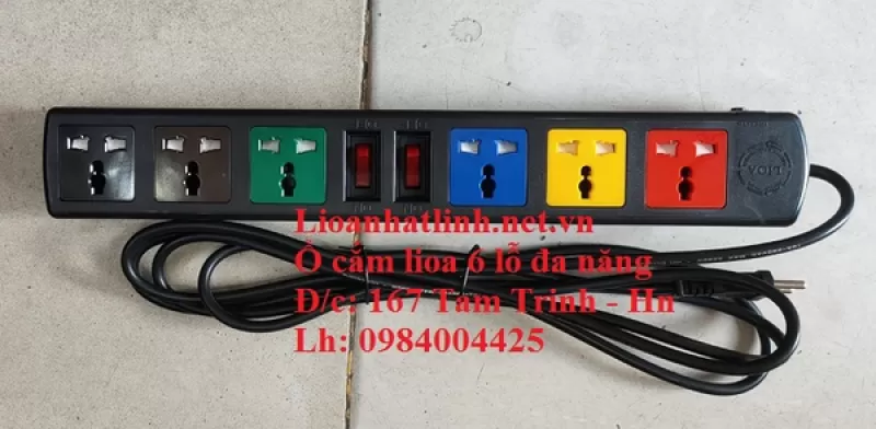 Ổ cắm lioa 6 lỗ 3 chấu, 2 công tắc loại đa năng mã sản phẩm 6D52N giá rẻ, ổ cắm điện lioa 6 lỗ dây 5m, dòng max 10a - 2200w, do lioa Nhật Linh sản xuất, bảo hành 10 năm, giao hàng miễn phí trên toàn quốc