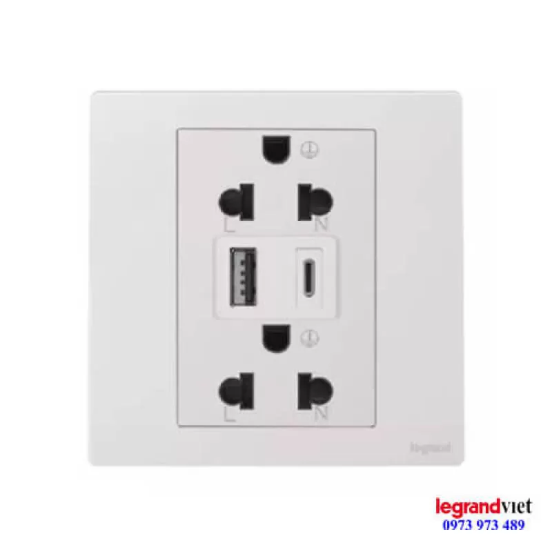 Ổ cắm đôi kèm usb type A +C màu trắng dòng Mallia senses của hãng thiết bị điện Legrand được nhập khẩu chính thức từ châu âu bởi shop legrandviet.com