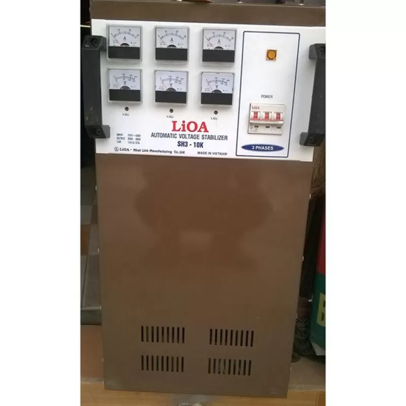 Ổn áp lioa 10kva 3 pha thế hệ 1 model sh3 - 10k, lioa 3 pha 10kva thế hệ 1 là loại ổn áp sơn mầu nâu, đồng hồ cơ, bán thanh lý giá rẻ, bảo hành 36 tháng, giao hàng miễn phí trên toàn quốc