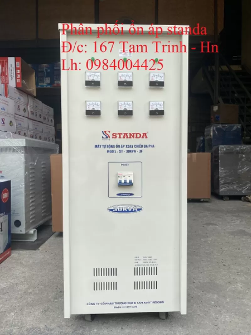 Phân phối ổn áp standa 30kva - 30kw 3 pha model ST - 30KVA - 3F giá rẻ. Ổn áp standa 30kva 3 pha quấn dây đồng 100%, bảo hành 04 năm, giao hàng miễn phí trên toàn quốc.