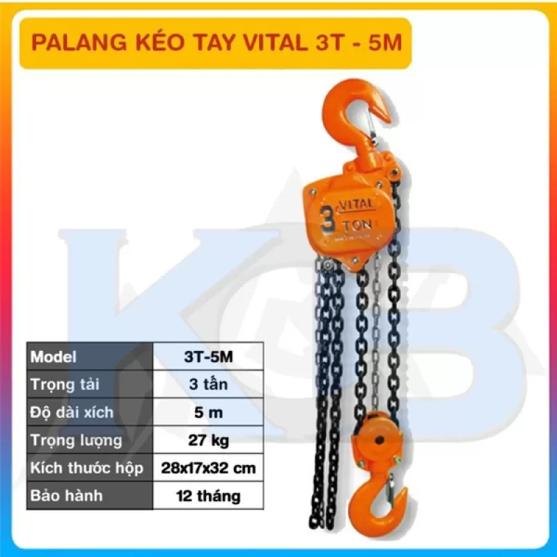 Pa lăng xích kéo tay VITAL 3T-5M là một trong những thiết bị không thể thiếu trong ngành xây dựng, cơ khí. Pa lăng giúp cho người vận hành dễ dàng nâng hạ các vật nặng lên xuống 1 cách dễ dàng, đảm bảo độ an toàn cao.
