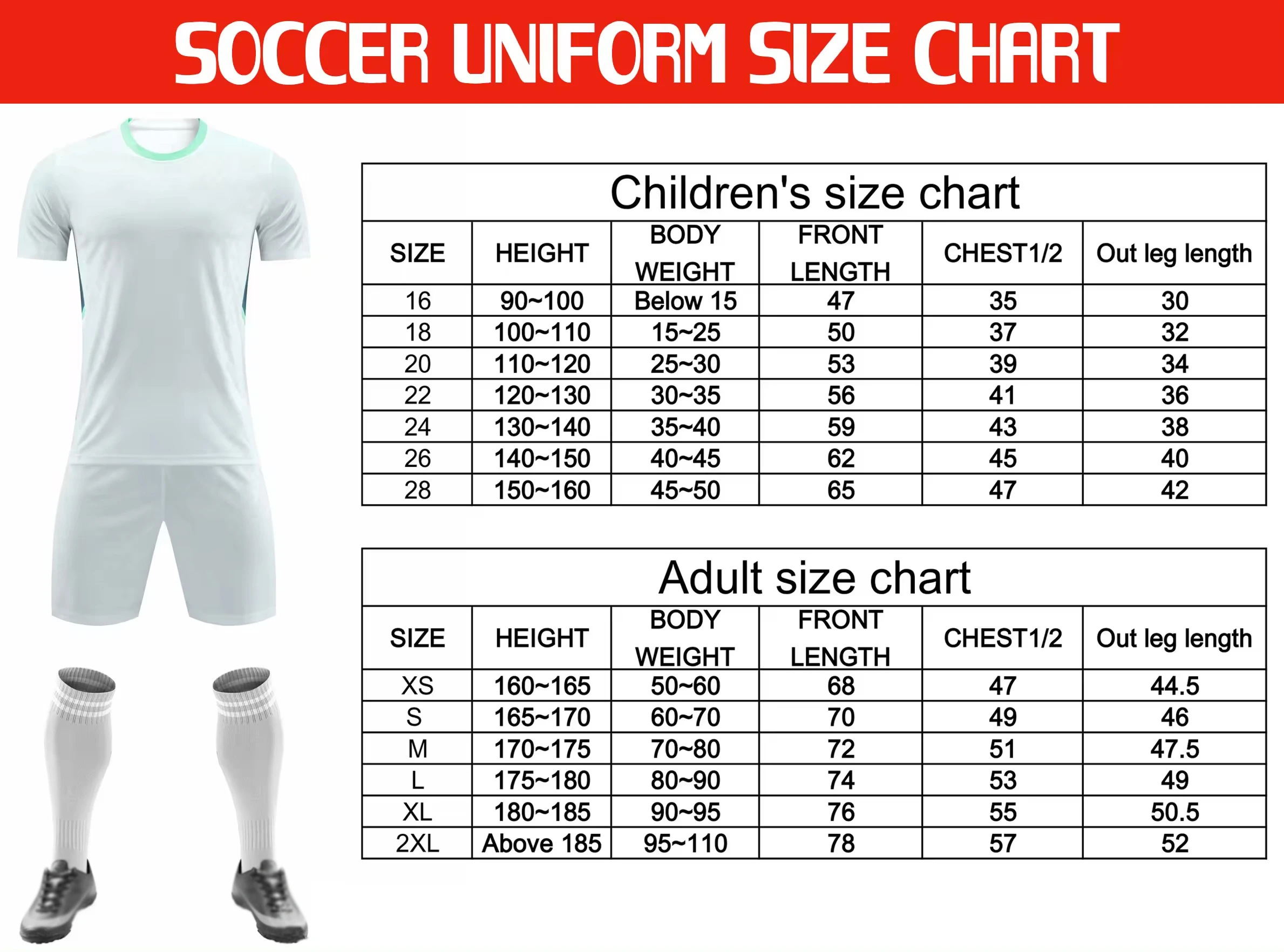Size: | All size are available from Youth (4. 6. 8. 10. 12. 14. 16) to Adults(S, M, L, XL, 2XL, 3XL, 4XL, 5XL, 6XL), Or special size request. We can customize the Sizes and Measurements as per customer demand. |