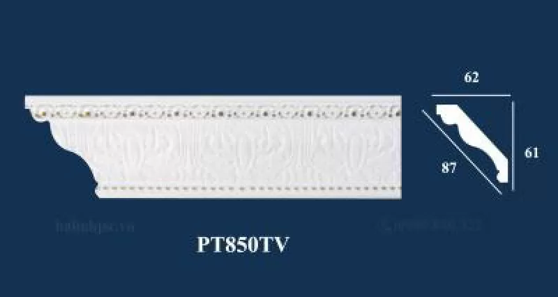 Phào chỉ PS trắng vàng - Phào góc trần PT850TV