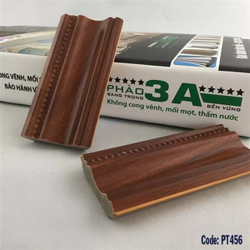 Bản rộng 4,5 cmPhào góc trần PT456 Giá: 0 Phào trần nhựa PT456 là vật liệu trang trí nội thất, nơi góc trần, phần tiếp giáp giữa trần và tườngShipping/Vận chuyển