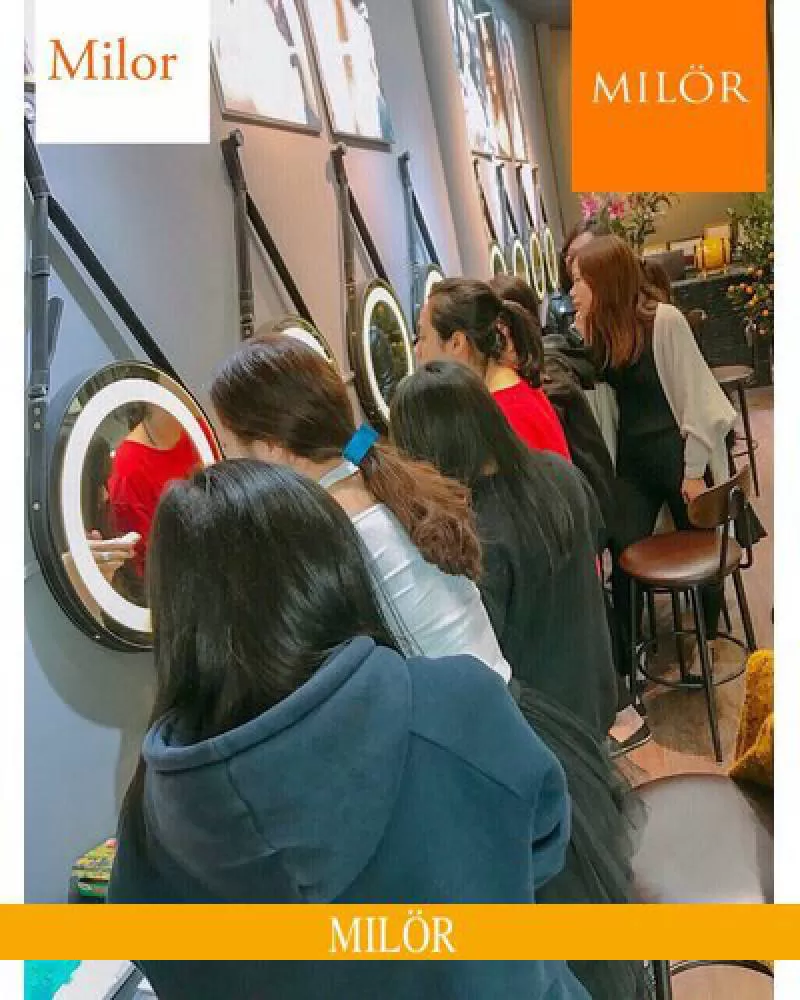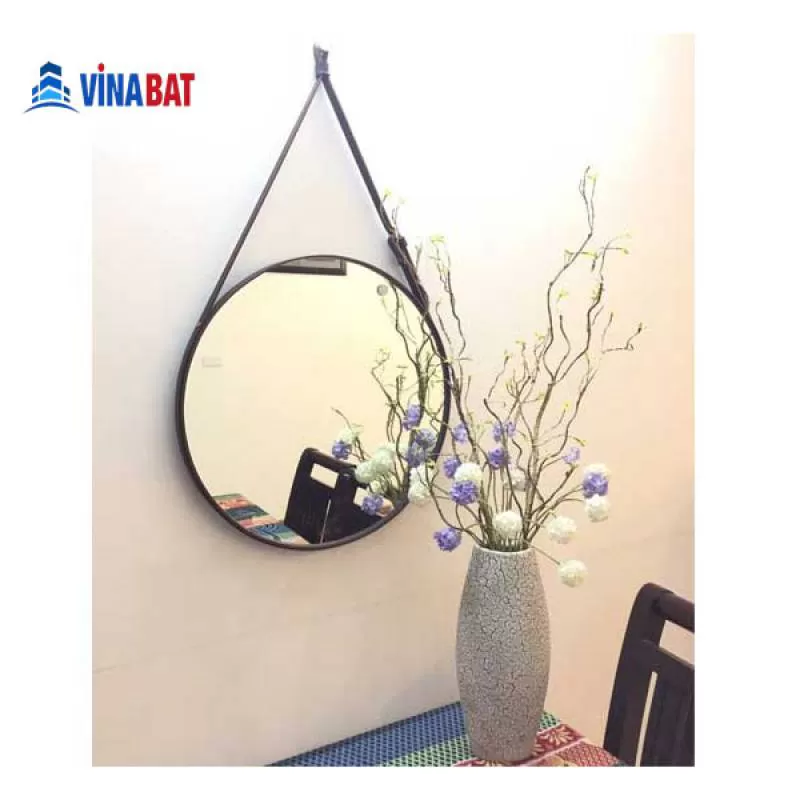 1YRSGương tròn trang điểm treo tường dâu da vô cùng bền bỉ và chắc chắn