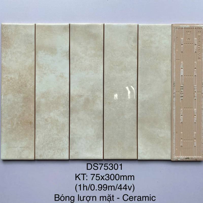 Gạch thẻ ốp tường trang trí màu Xám nhạt khuôn xẻ góc M75302J 75*300mm