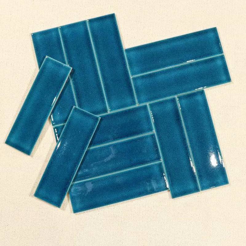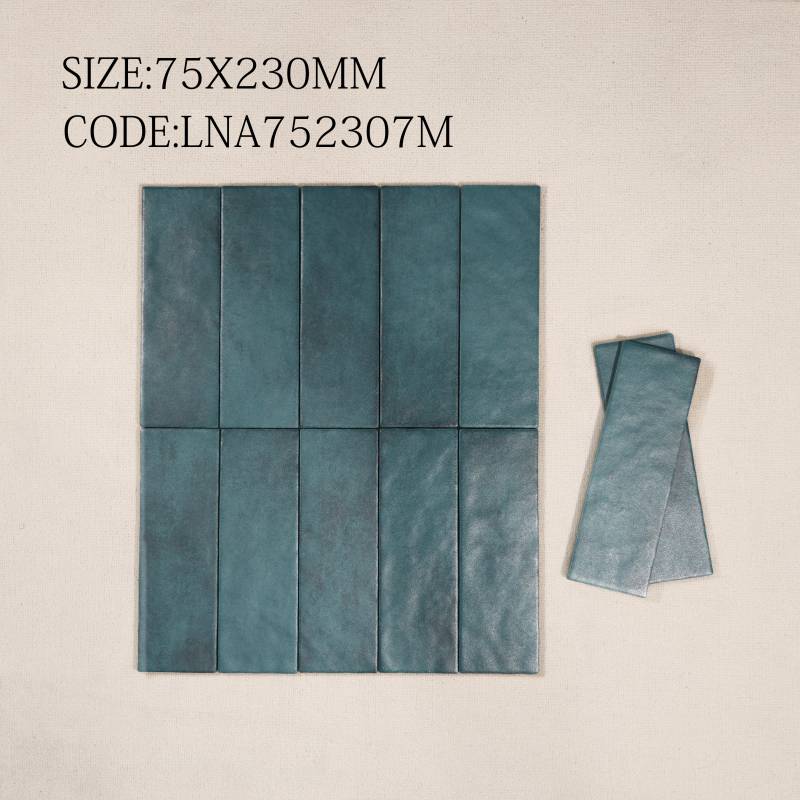 Gạch thẻ ốp tường trang trí cực đẹp Xanh đậm bóng khuôn xẻ góc M75306J-3 75*300mm