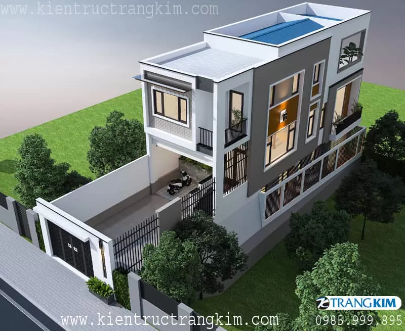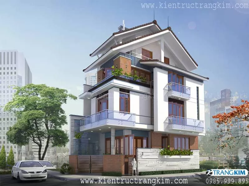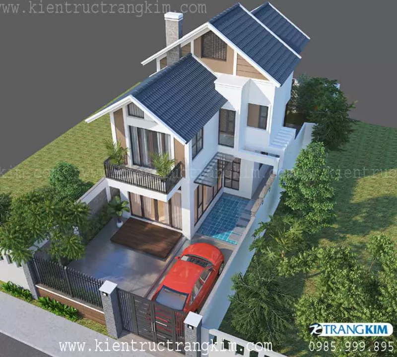 Thiết kế biệt thự 3 tầng mái thái 5 phòng ngủ hiện đại, 180m2