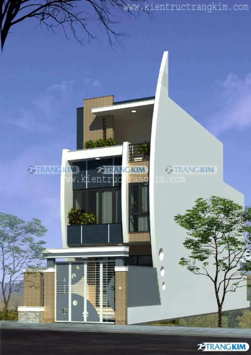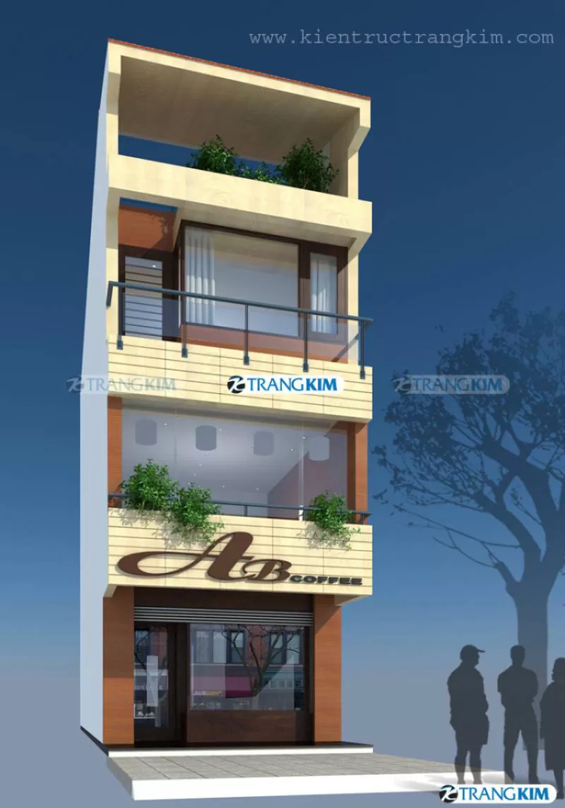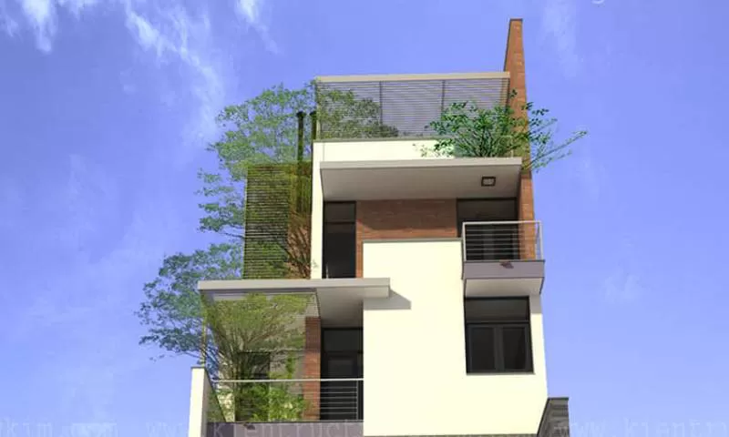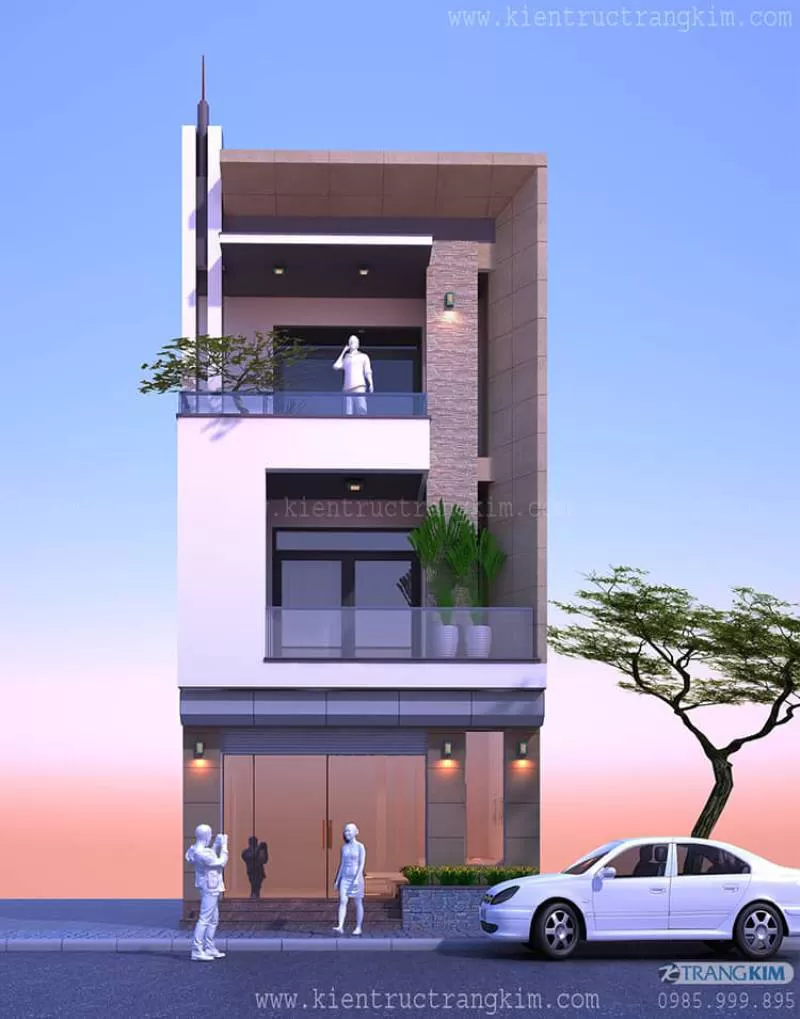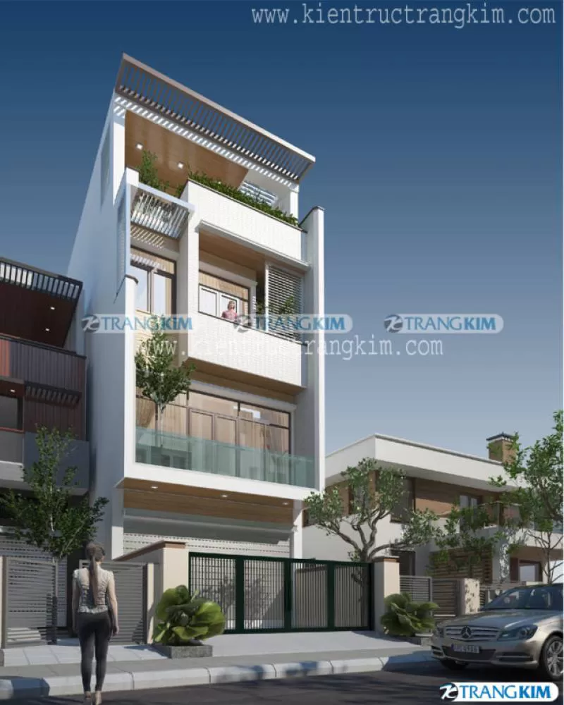Thiết kế nhà ống 4 tầng 1 tum 5 phòng ngủ 4x20m có thang máy hiện đại