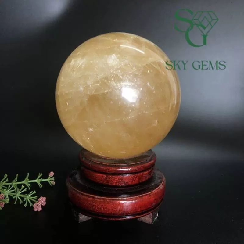 Quả Cầu Canxit Vàng - Món Quà Phong Thủy Mang Lại May Mắn Và Tài Lộc. Khối lượng 1,35kg, đường kính 10cm. Hợp mệnh Thổ - Kim. Liên hệ ngay: 0981.648.682.