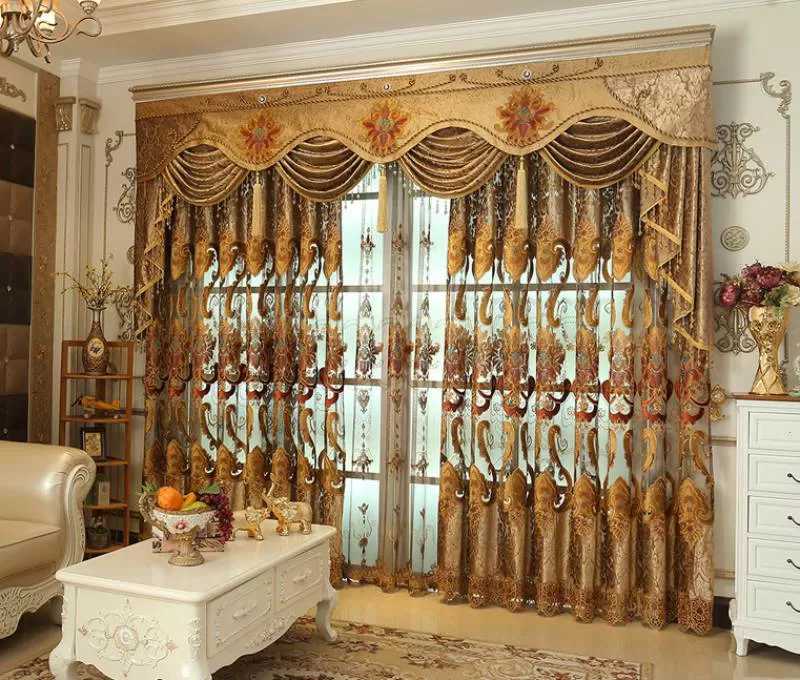 Mẫu rèm cửa vải cao cấp với chất liệu gấm được thêu họa tiết cực đẹp dành cho phòng khách tại Hà Nội . Với tone màu vàng sậm cùng với đó là họa tiết hoa văn vô cùng tinh tế khiến cho phòng khách của gia đình bạn trở lên lộng lẫy hơn bao giờ hết