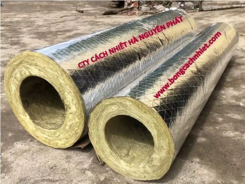 - Rockwool ống có bọc bạc hay Rockwool có 1 mặt bạc dạng ống : Không gây cháy, cách nhiệt và cách âm rất tốt, trọng lượng nhẹ, chi phí thấp, lắp đặt nhanh chóng.