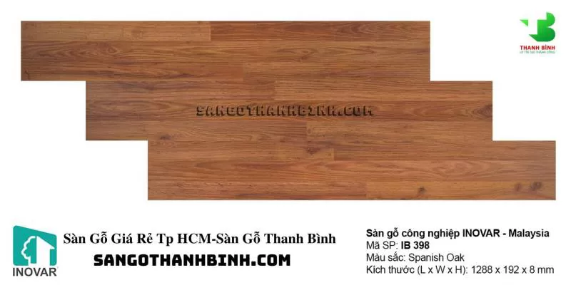 Sàn Gỗ Công Nghiệp INOVAR 8mm Mã IB 398 Sàn Phẳng