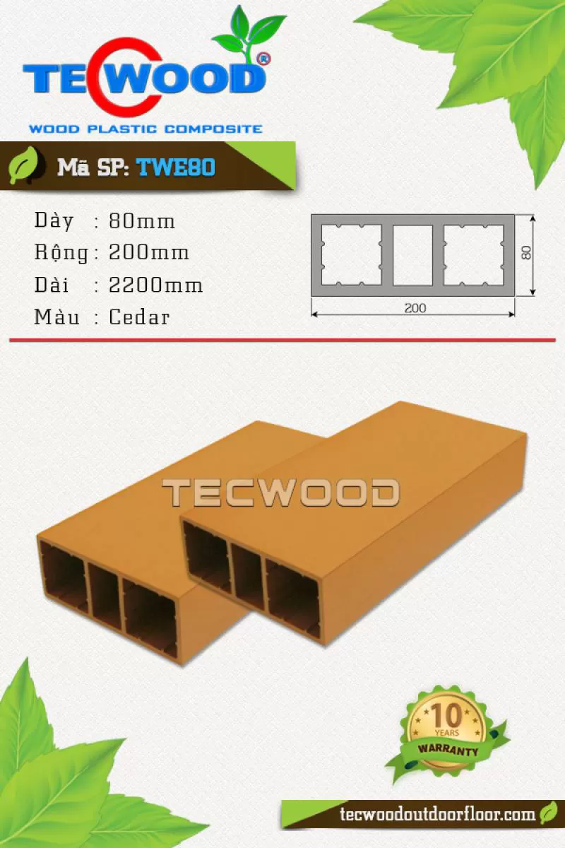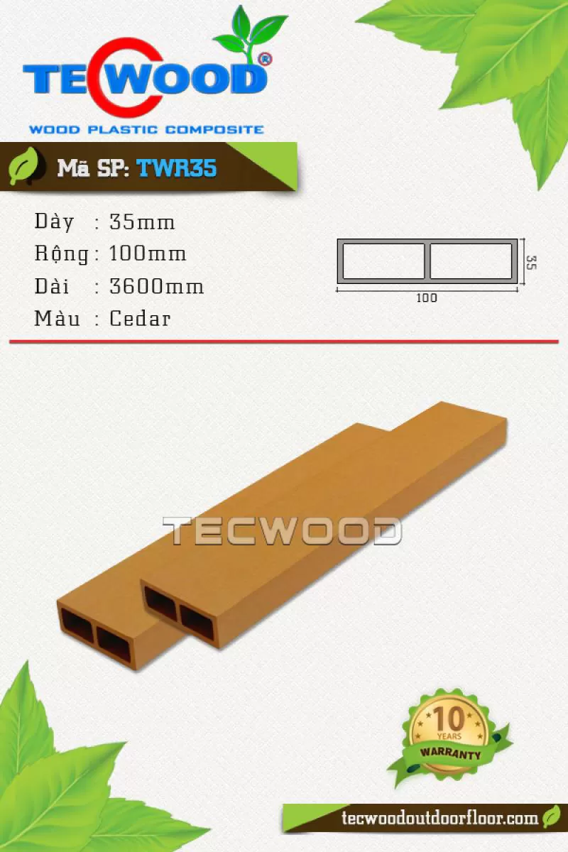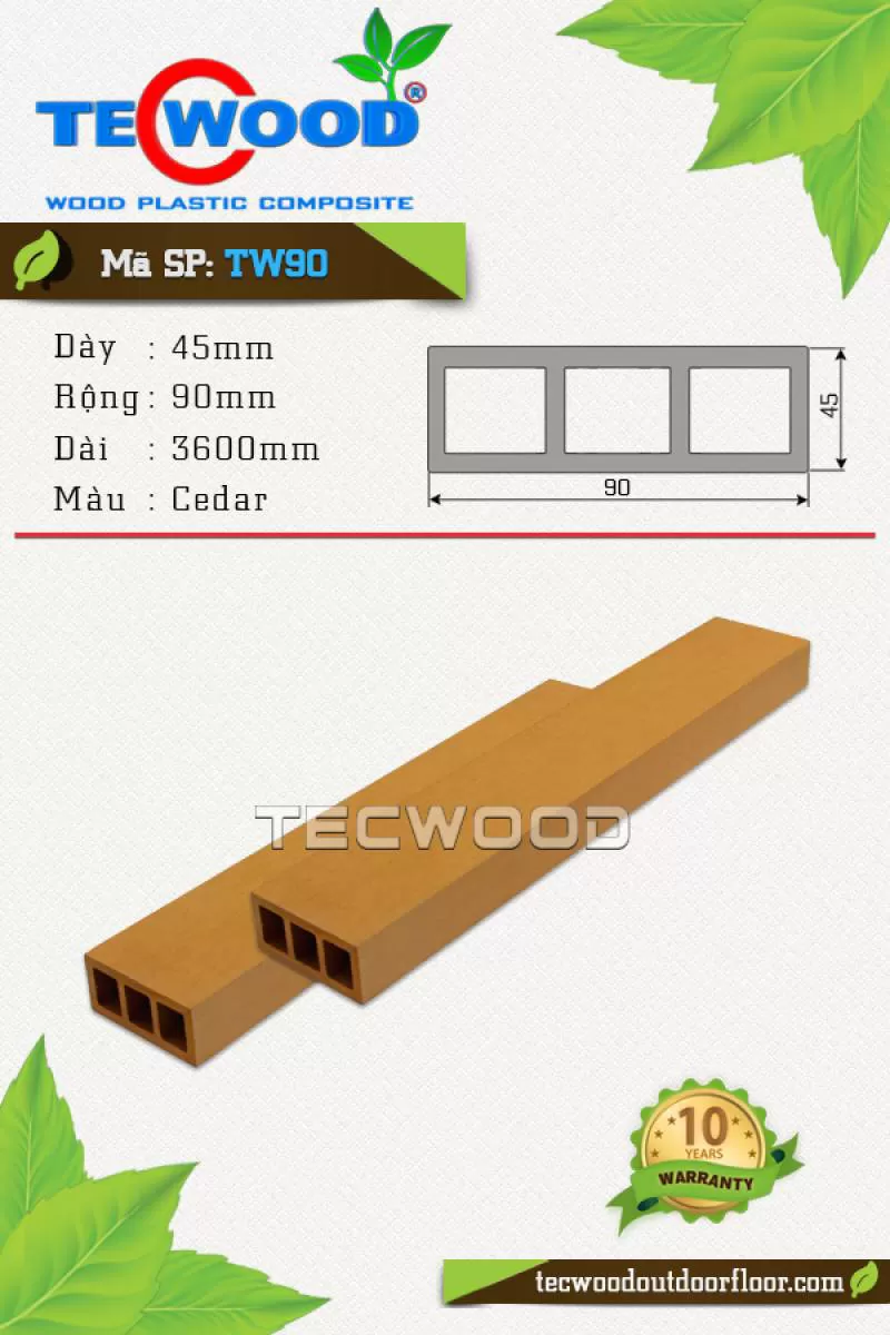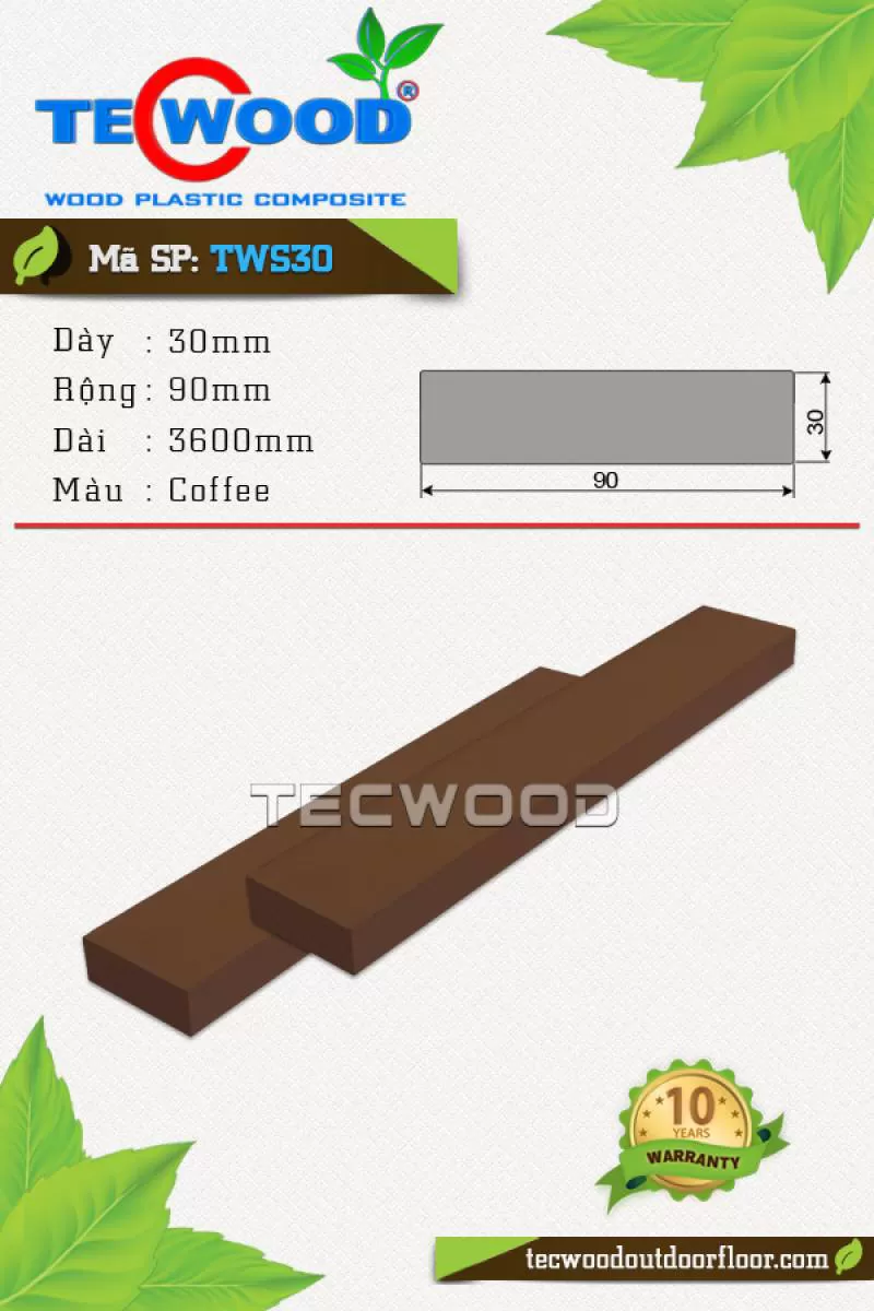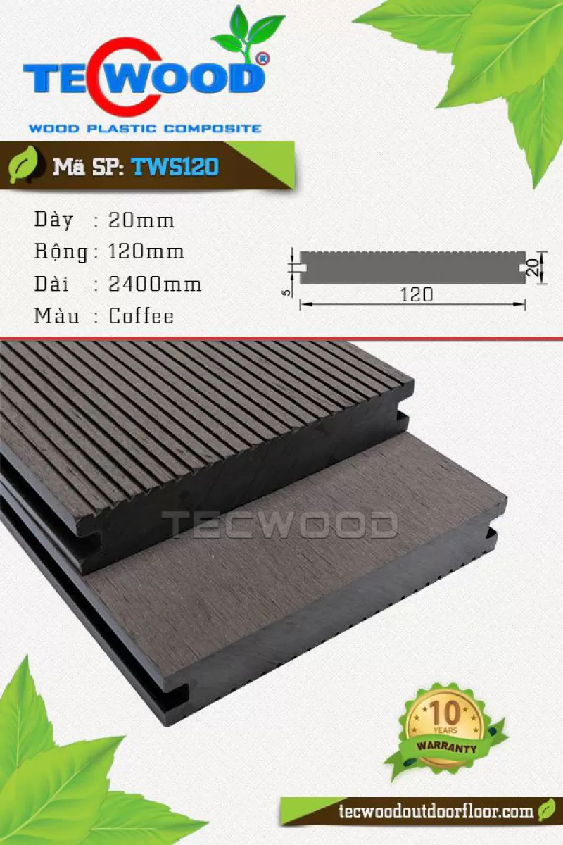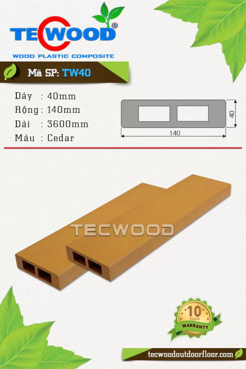 Sàn gỗ TWA140 là vật liệu gỗ nhựa TecWood với quy cách 25x140x2200mm chuyên dùng cho lót sàn ngoài trời với giá 1.350.000 vnđ/m2 chưa gồm phí thi côngShipping/Vận chuyển