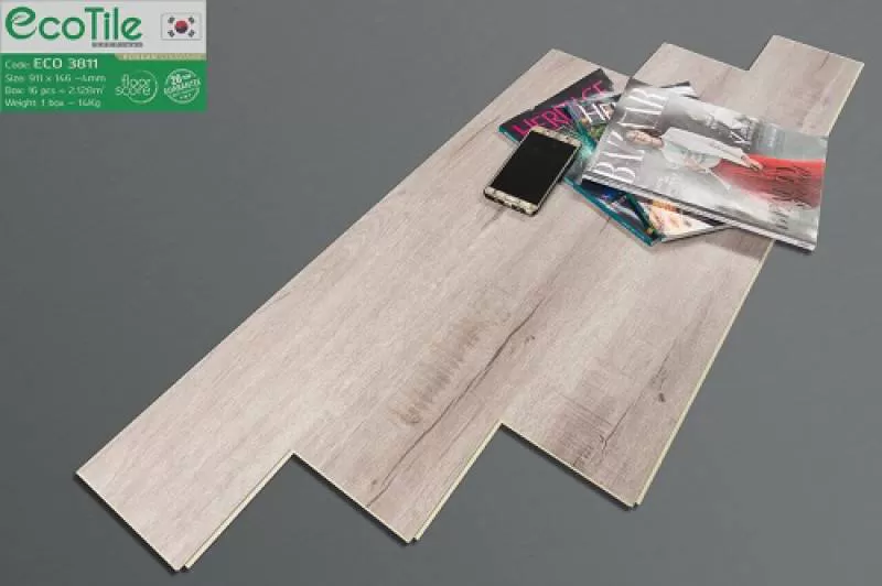 Sàn nhựa hèm khóa EcoTile 3811 sản phẩm cao cấp kháng nước 100%, không mối mọt, không cong vênh, co ngót, phồng rộp. Tấm ván sàn nhựa EcoTile 3811 được sản xuất bằng nguyên liệu tự nhiên là nhựa nguyên sinh SPC và bột đá, sản phẩm tốt cho người tiêu dùng, không độc hại. […]Shipping/Vận chuyển