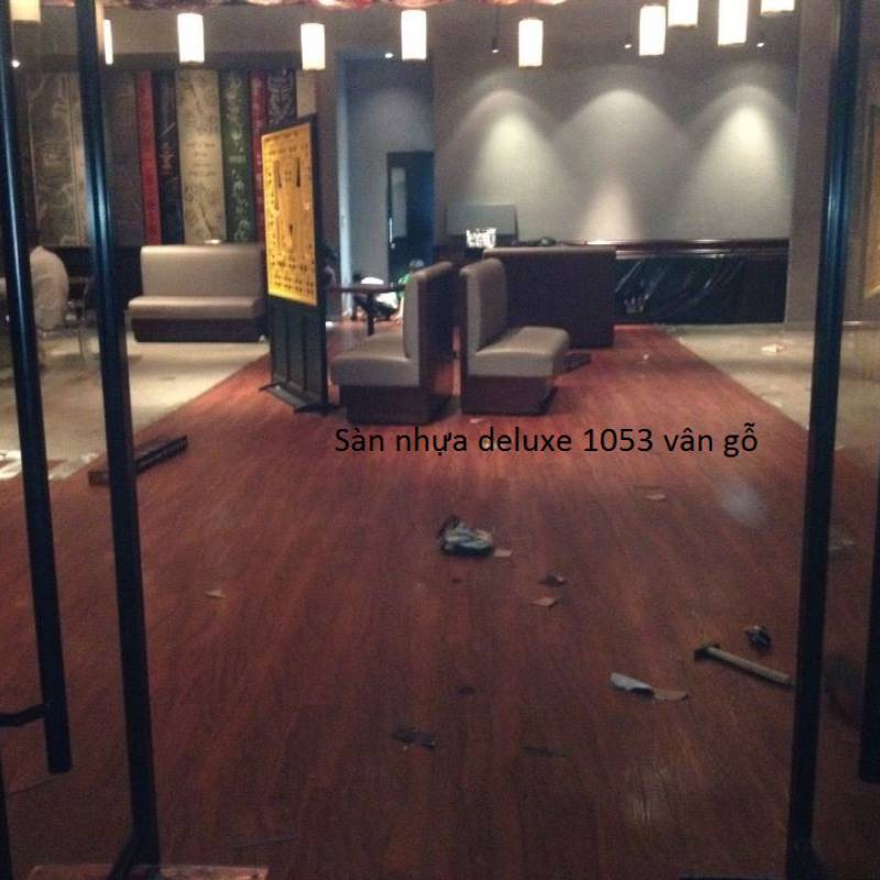 Sàn nhựa giả gỗ màu đỏ vân gỗ tự nhiên Deluxe 1053
