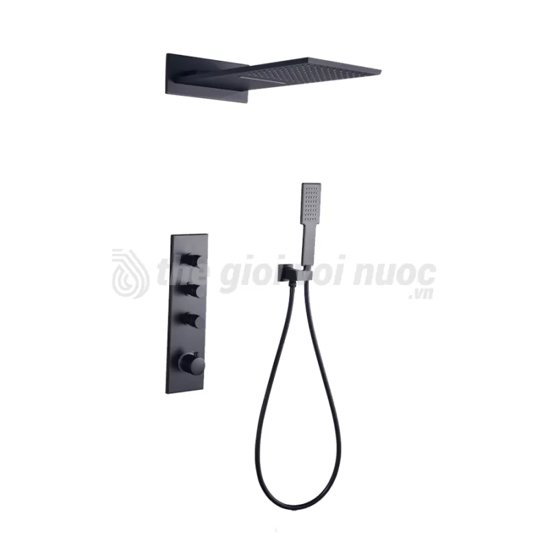 - Chất liệu: Đồng thau phủ sơn tĩnh điện đen, thép không gỉ, lõi chia nước bằng đồng thau và lõi van gốm sứ.- Lưu lượng nước: 16L/phút ~ 28L/phút.- Áp lực nước: 0.03 ~ 0.06 MPa.- Trọng lượng: khoảng 12kg.- Chức năng: Vòi sen tắm đứng, thác nước, vòi sen cầm tay.- Ứng dụng dùng cho: Căn hộ, Khách sạn, Biệt thự, Res