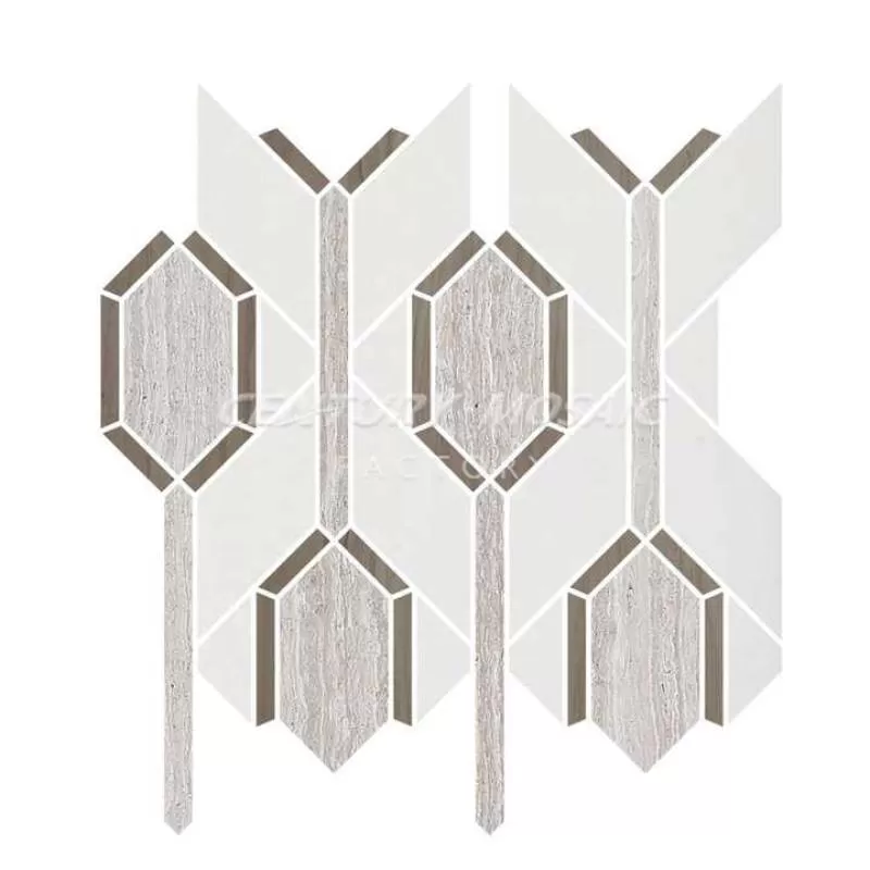 Century Mosaic Stone Marble Kitchen Backsplash Tile Mosaic Long Hexagon White Beige Bathroom Mosaic Tile for Home Decoration