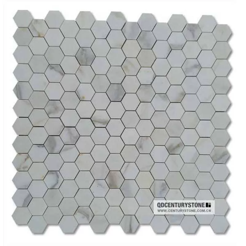 Centurymosaic Polished Calacatta Gold White Marble Hexagon Floor Mosaic Tile Shaped Tiles