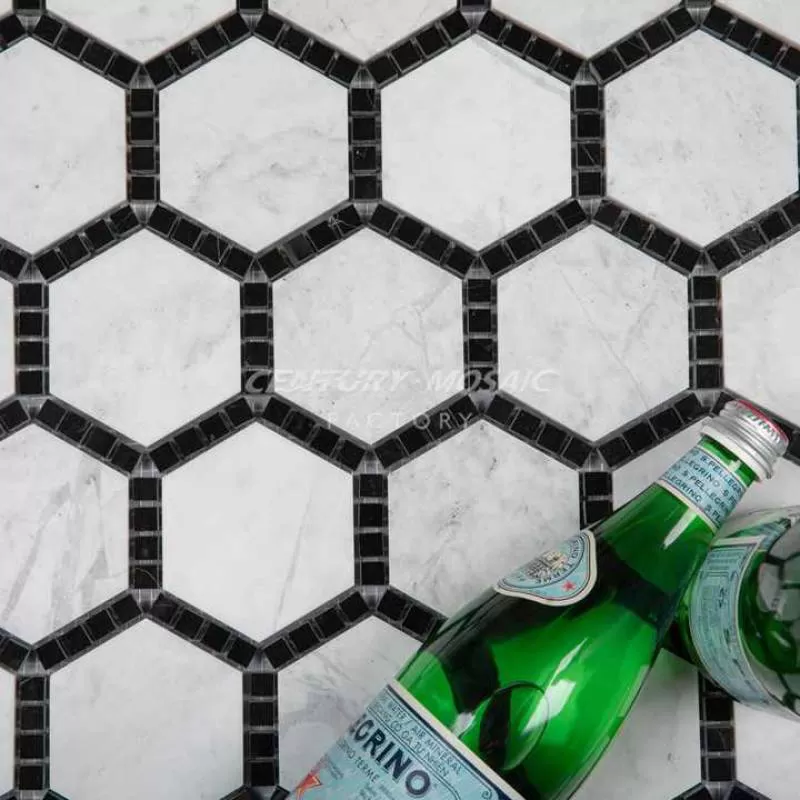 Century Mosaic New Original Design Thassos White Hexagon Mosaic with Black Bathroom Backsplash Kitchen Mosaic Tile