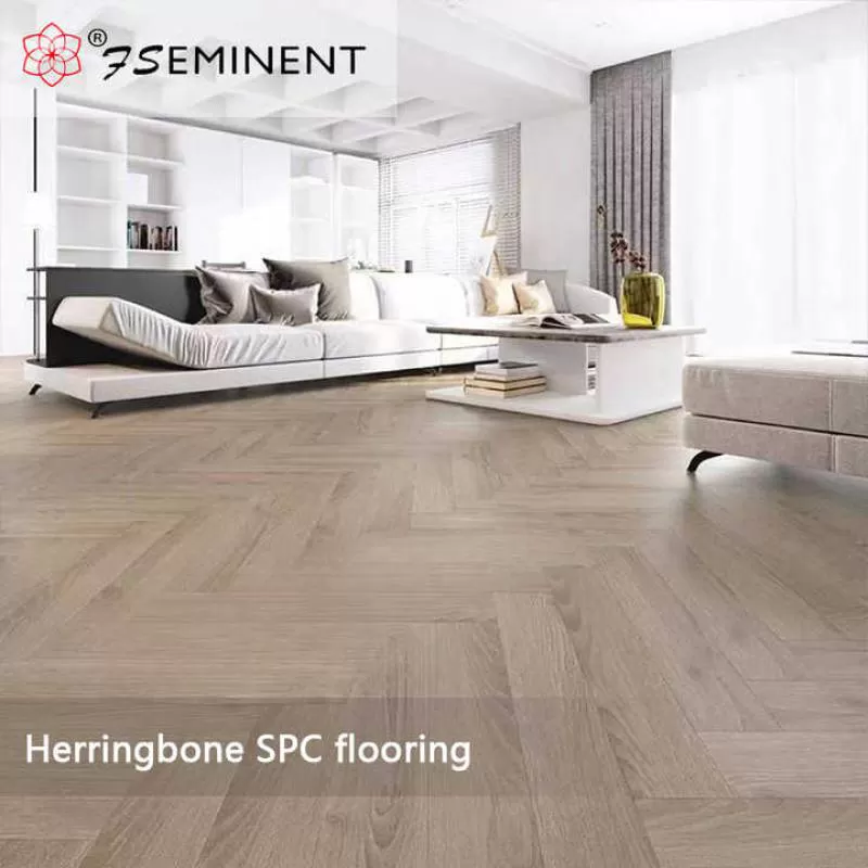 SPC Herringbone Flooring Interlocking PVC Flooring Easy Click Installation Indoor Use Garages 5mm-8mm Marble Plastic Flooring