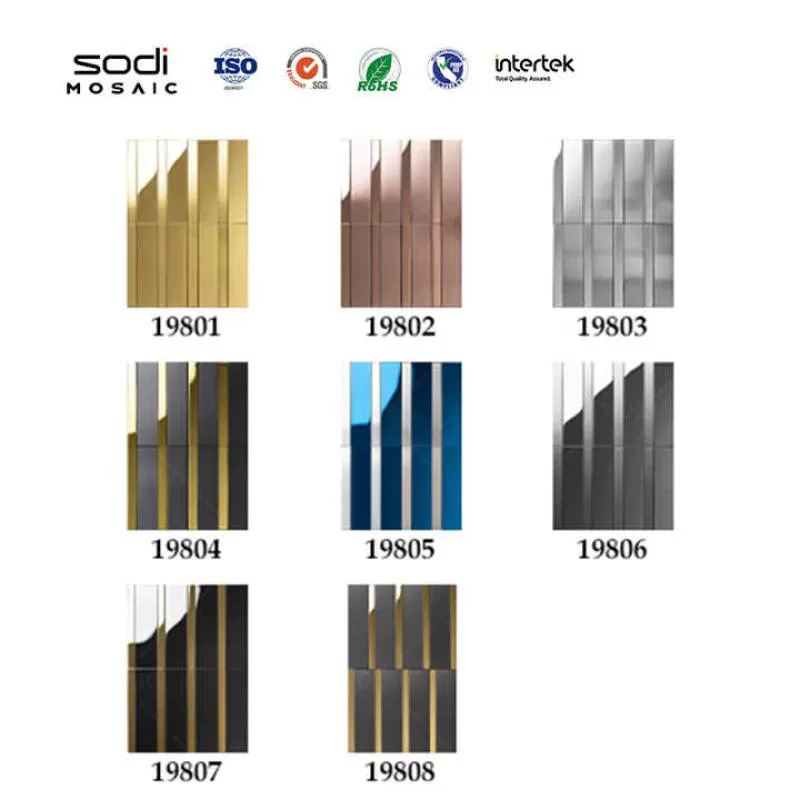 Wall Decoration Bathroom Kitchen Tile Blue Grey Gold Stainless Steel Backsplash Metal Mosaic