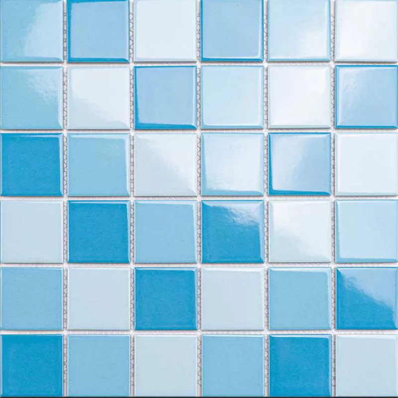 Wholesale Porcelain Mosaic Tile 306X306 Glossy Mixed Blue Ceramic Mosaic Swimming Pool Tiles for Apartment or Villa