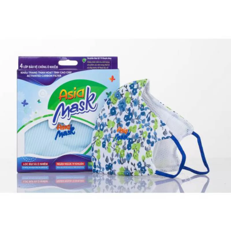 Khẩu trang vải than hoạt tính Asia Mask (dây thun có nút điều chỉnh)