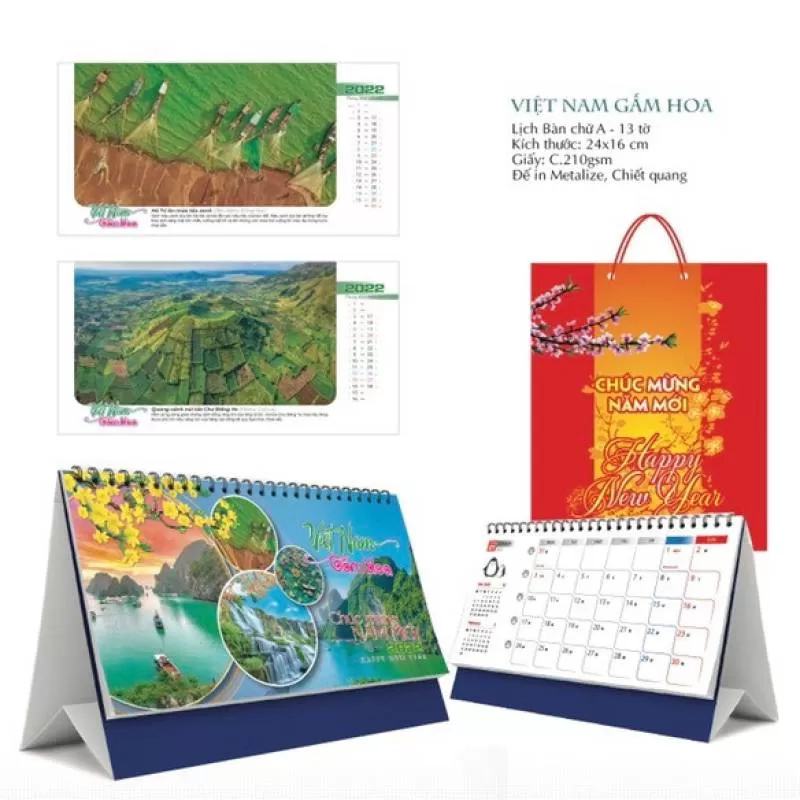 Lịch để bàn 2022 chủ đề Việt Nam Gấm Hoa