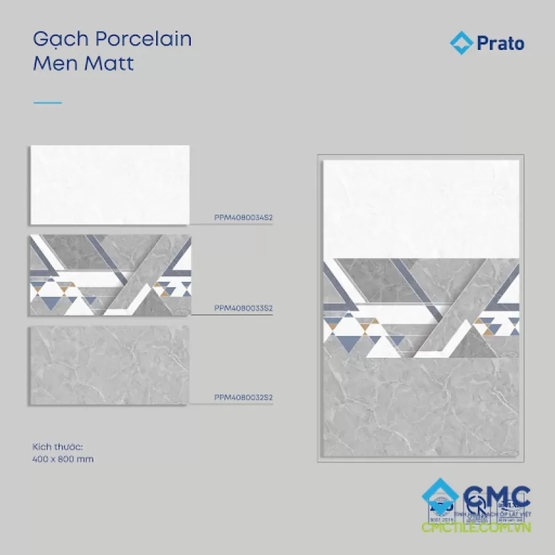 Bộ gạch ốp tường vân đá marble, hoạ tiết tam giác màu xám trắng PPM4080032-33-34S2