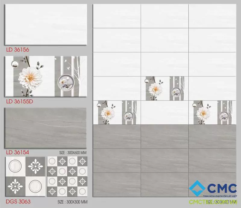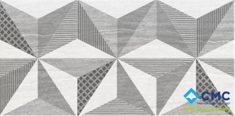 Gạch ốp tường màu xám – trắng thời thượng, họa tiết tam giác cách điệu LX 36607D