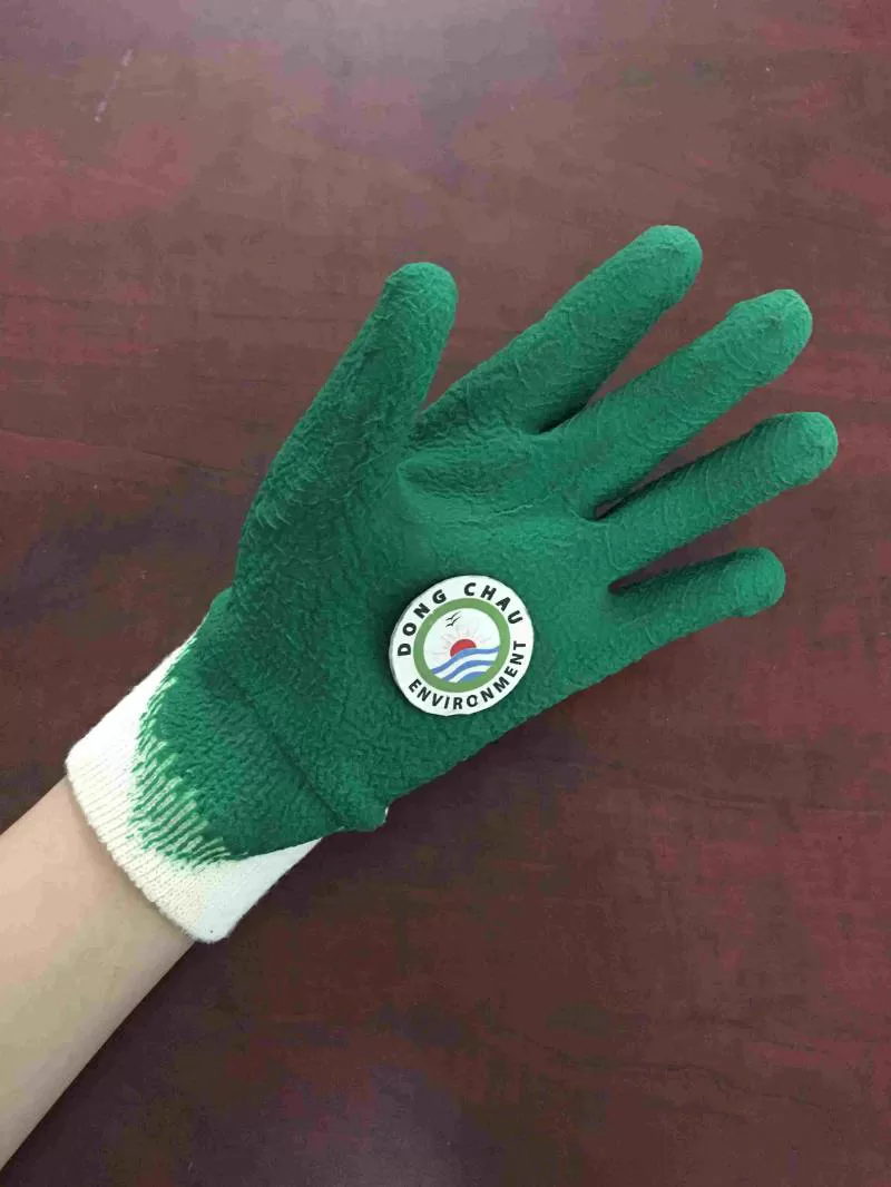 Găng tay vải bo cổ tay phủ sơn xanh