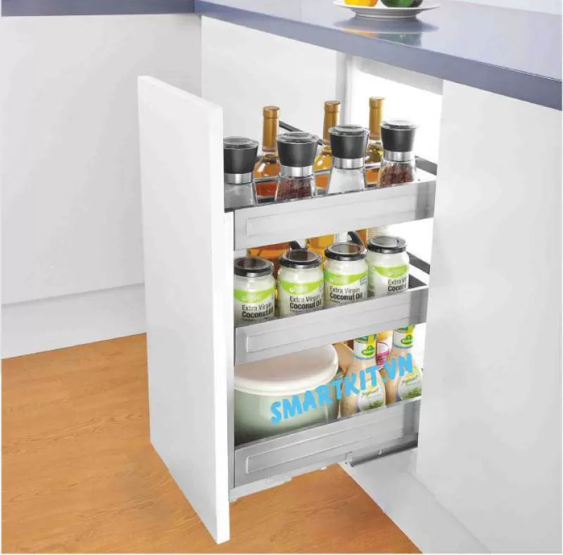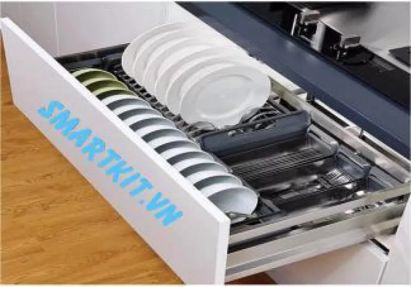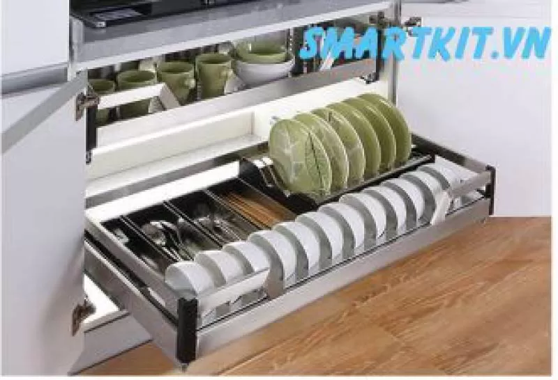 GIÁ CẮM DAO NAN DẸT, ĐỰNG CHAI LỌ, GIA VỊ CHẤT LIỆU INOX 304, RAY GIẢM CHẤN GẮN LIỀN