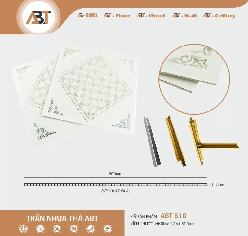 Trần nhựa thả ABT 610 ( KT: 60*60)
