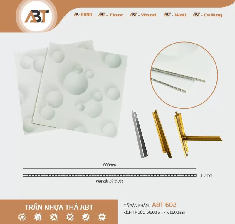 Trần nhựa thả ABT 602 ( KT: 60*60)