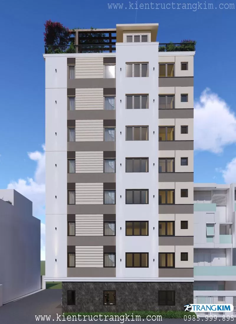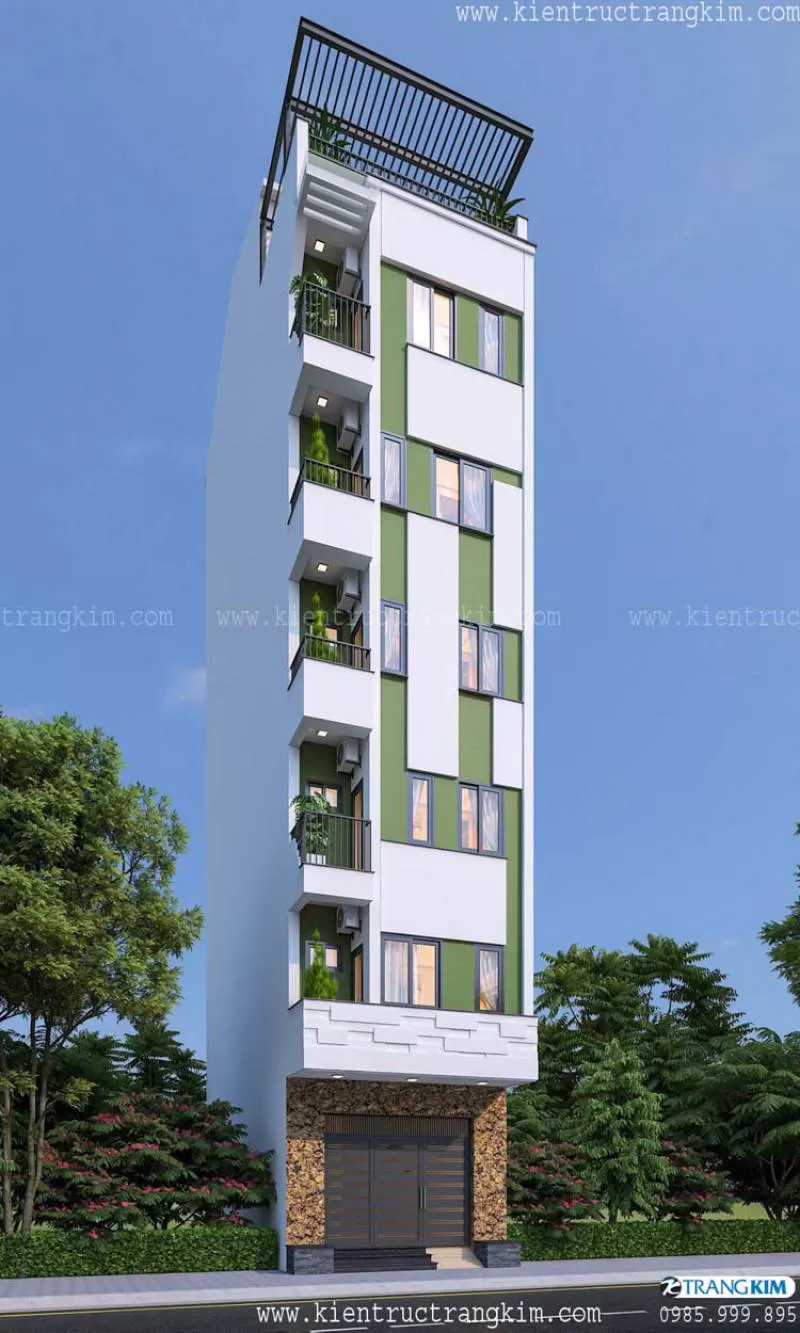 Thiết kế nhà ống 7 tầng 10 phòng cho thuê trọ hiện đại diện tích 5x10.5m - Trangkim