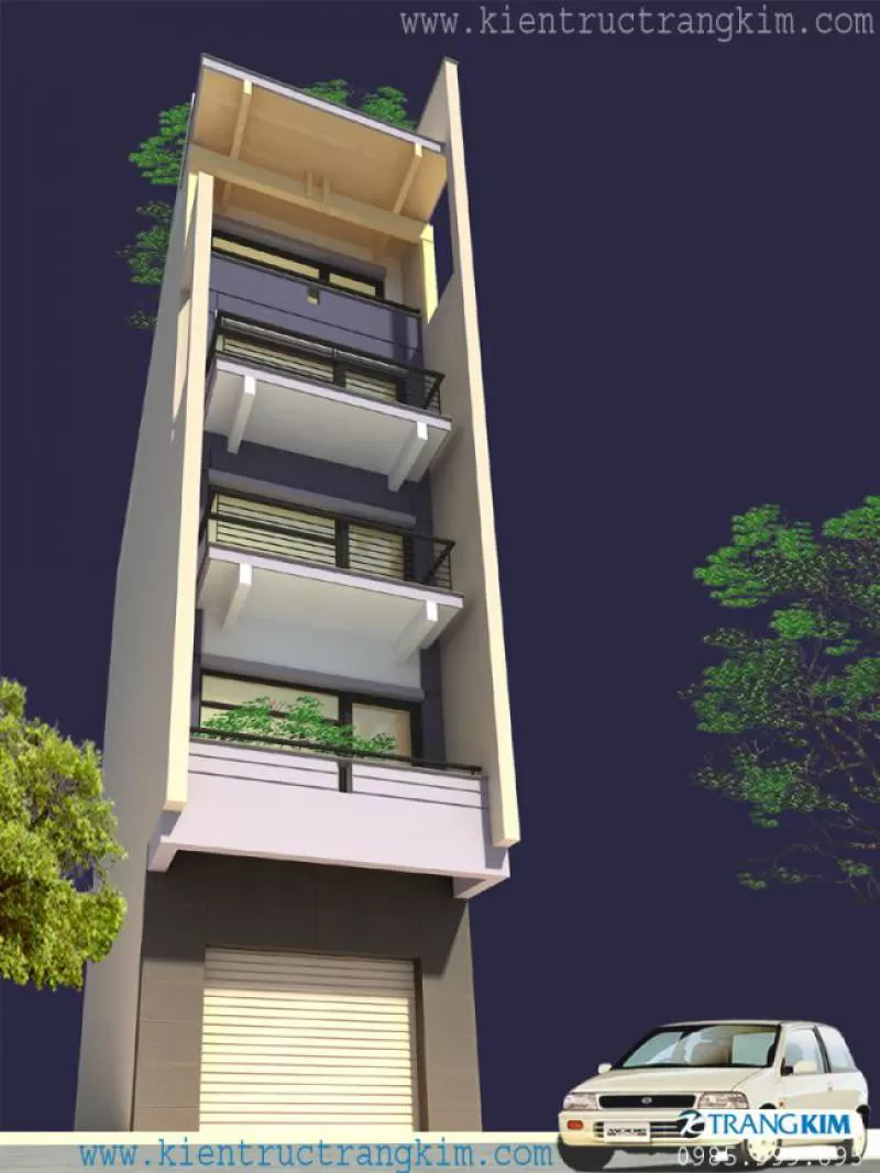 Thiết kế nhà ống 7 tầng 1 lửng 1 tum, vừa ở vừa làm văn phòng cho thuê 4x14m